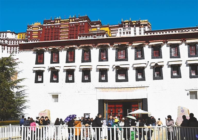 圖為游客正在有序進(jìn)入布達(dá)拉宮。記者 洛桑 攝