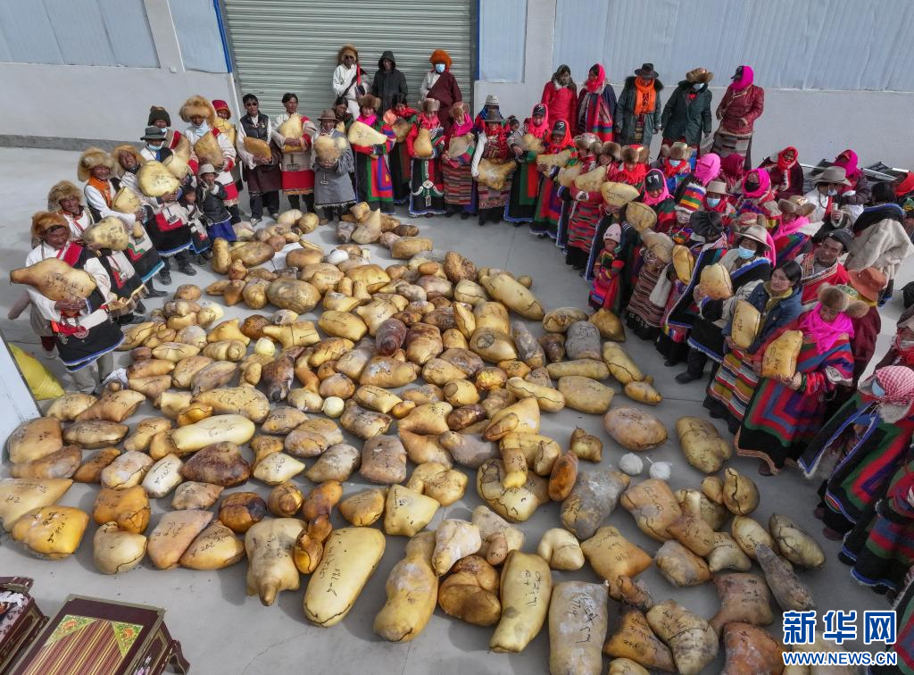 合作社為社員發(fā)放畜產(chǎn)品(11月28日攝)。新華社發(fā)(索朗仁青 攝)