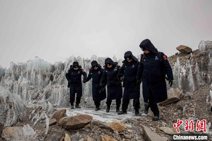 近日,西藏出入境邊防檢查總站普瑪江塘邊境派出所對(duì)轄區(qū)海拔5600米的崗布冰川(中不邊境)開(kāi)展第332次巡邏。