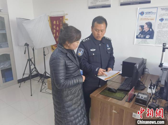 圖為日喀則市樟木新區(qū)警務(wù)室移民管理警察向出行人員講解辦理通行證需要準(zhǔn)備的材料。吳曉光 攝