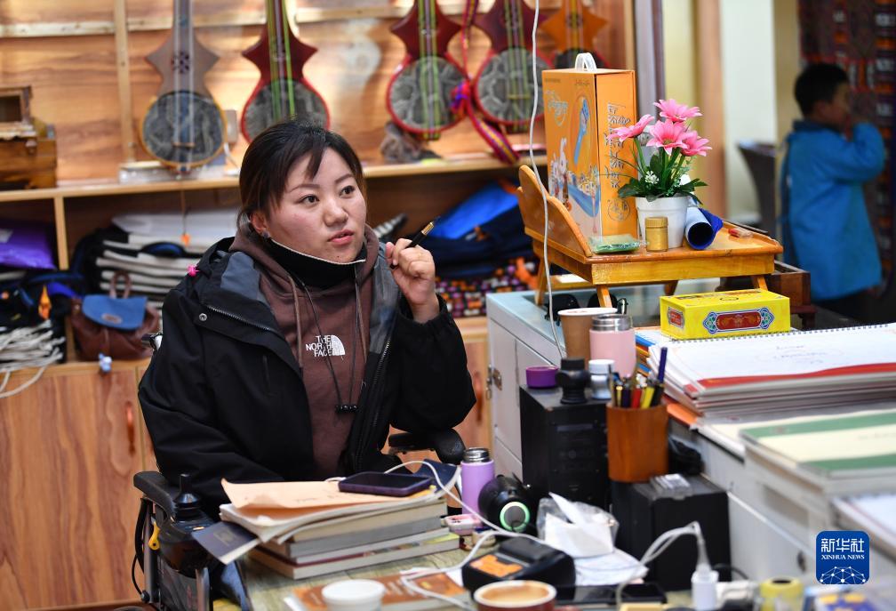 29歲的拉薩姑娘卓嘎因小兒麻痹落下殘疾,她在覺列的公司里學(xué)習(xí)了藏文書法,還成為拉薩八廓商城一個藏文書法和扎念琴體驗班的負(fù)責(zé)人,最多的時候要為150名孩子授課?,F(xiàn)在她每月稅前收入有大約9000元。