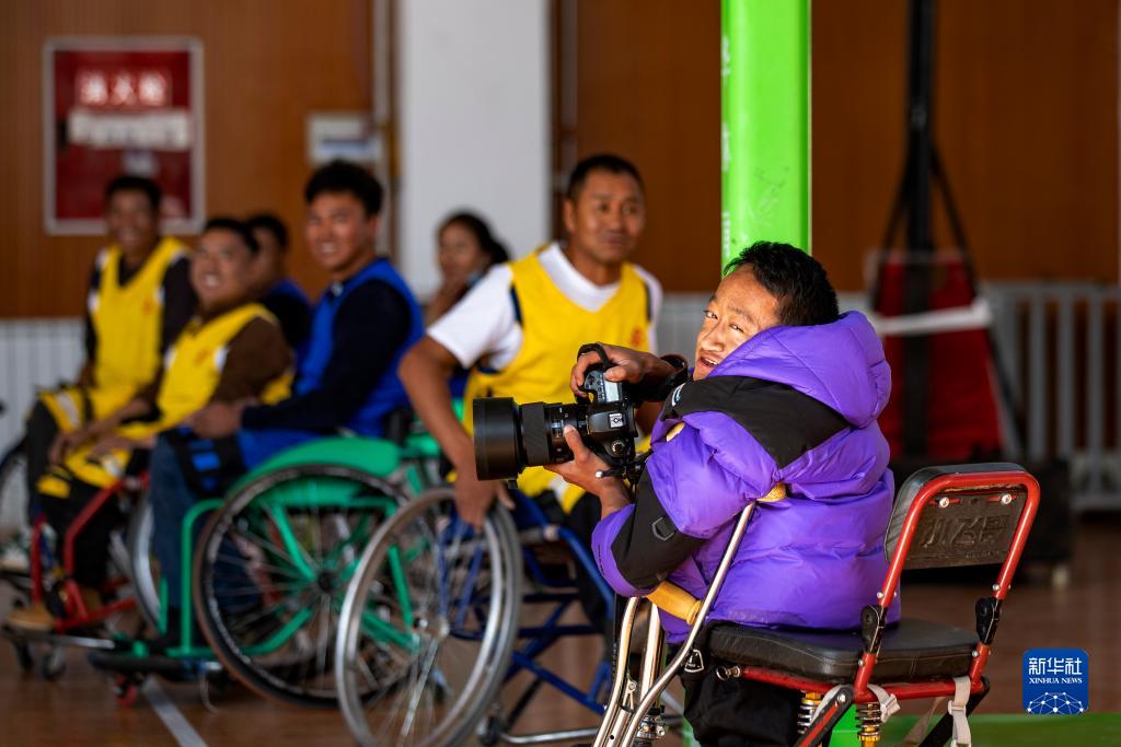 拉巴頓珠在拍攝輪椅籃球訓(xùn)練(11月26日攝)。新華社記者 姜帆 攝