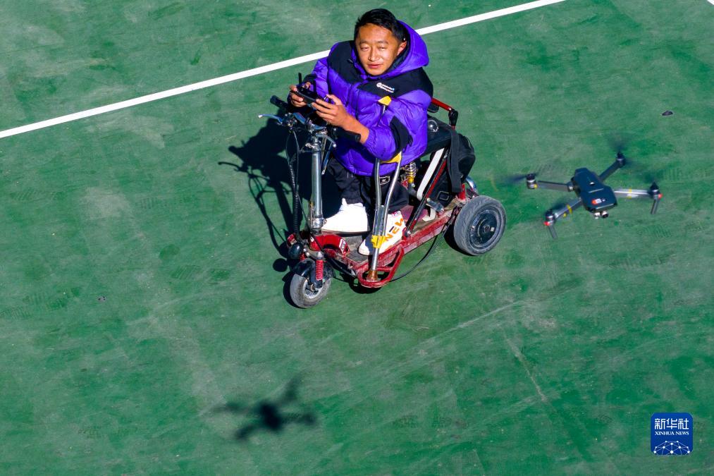 拉巴頓珠在練習(xí)操作無人機(無人機照片,12月2日攝)。新華社記者 姜帆 攝