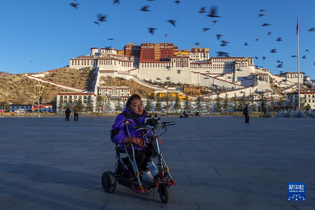 拉巴頓珠在清晨的布達(dá)拉宮廣場(12月2日攝)。新華社記者 姜帆 攝