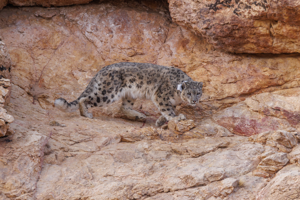 被放歸自然的雪豹。新華網(wǎng)發(fā)(長隆集團(tuán)供圖)