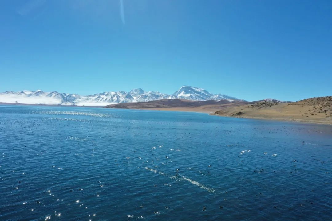 夏季的普莫雍錯(cuò),湖水清澈,冬天的普莫雍錯(cuò)湖面會(huì)隨著溫度降低結(jié)冰,表層通透可見(jiàn)湖底,裂紋蔓延整個(gè)湖面,在陽(yáng)光的照射下,呈現(xiàn)出極致的藍(lán),美麗又浪漫,有著世界海拔最高、中國(guó)最大的藍(lán)冰湖美譽(yù),也被稱(chēng)為“中國(guó)的貝加爾湖”,它所擁有的是西藏也是中國(guó)最夢(mèng)幻純凈的藍(lán)色。