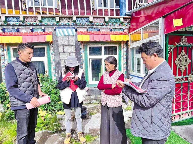 2023年9月26日,自治區(qū)人大代表歐珠(左一)在林芝市波密縣扎木鎮(zhèn)巴瓊村開展防止返貧監(jiān)測(cè)工作。