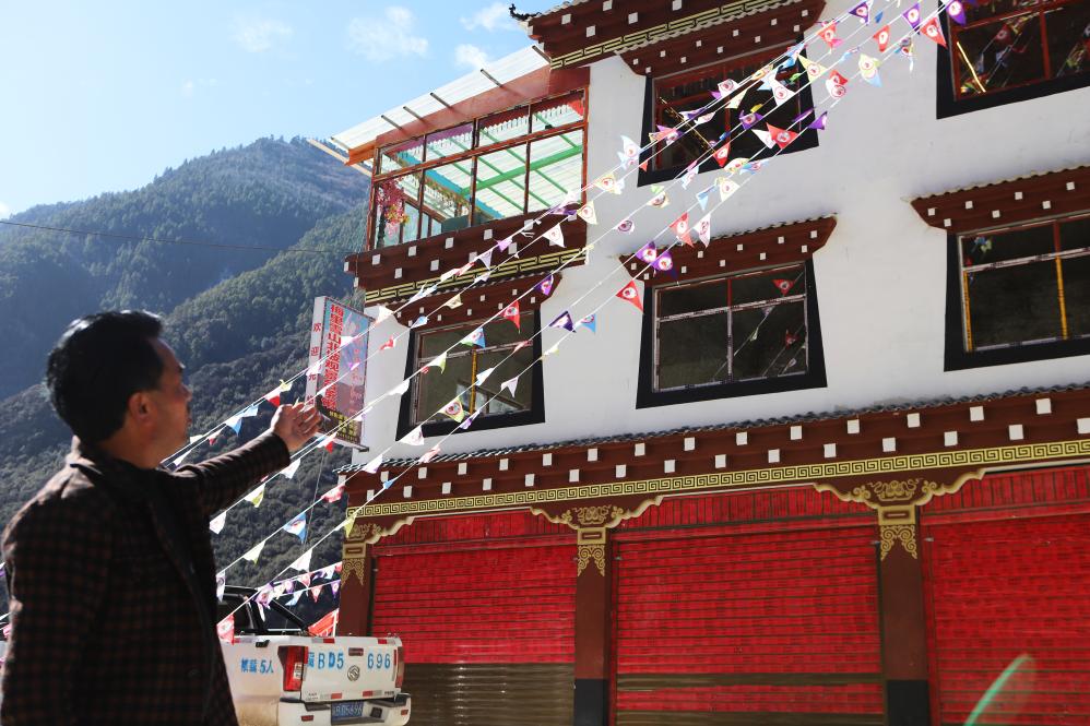 格桑次仁向記者展示自家的新房。新華社記者關(guān)明輝 攝