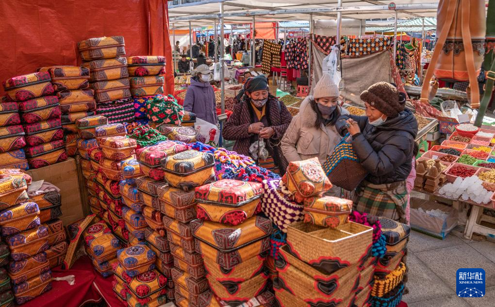 1月9日,商戶在推銷“巴珠”(藏族頭飾)。新華社發(fā)(丁增尼達(dá) 攝)