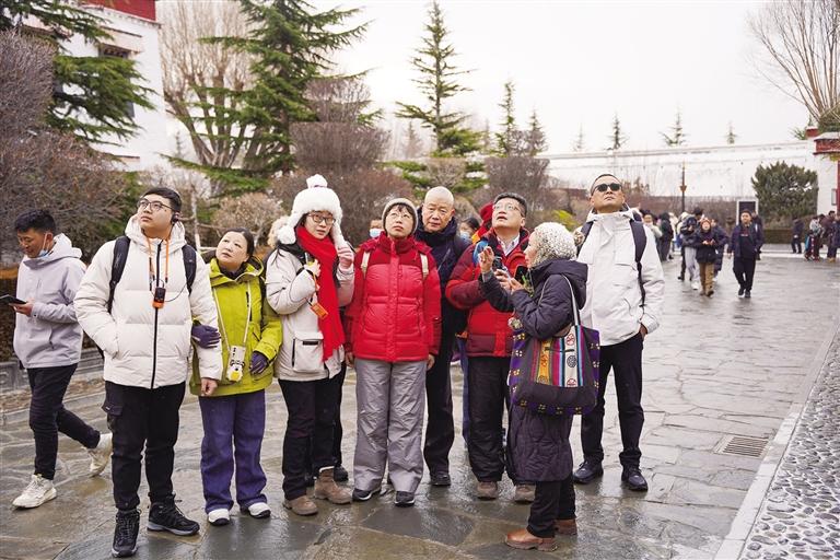 1月16日一大早,拉薩下起了2024年的第一場雪,雪中的布達拉宮有著別樣的美麗。王碧秀帶著幾位從上海來的游客參觀了這座擁有千年歷史的宮殿,細致的講解隨著雪花一起,將雪域高原厚重的歷史文化送進了游客的心里,撒下了希望的種子??傆幸惶?,這些種子會生根發(fā)芽,帶著王碧秀和無數(shù)導(dǎo)游們的期冀,開出絢麗的花朵,吸引更多人來到西藏、愛上西藏。