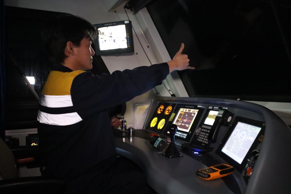 拉薩南接觸網(wǎng)維修隊(duì)的作業(yè)車(chē)司機(jī)正在操作接觸網(wǎng)軌道作業(yè)車(chē)(1月24日攝)。新華社發(fā)(拉巴次仁 攝)