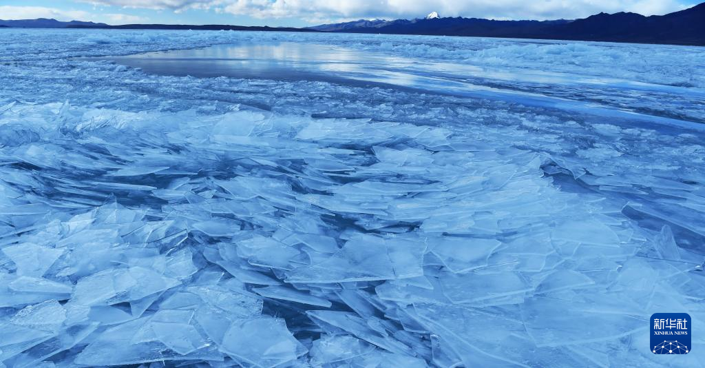 瑪旁雍錯湖面上的冰像碎玻璃一樣透亮(1月29日攝)。新華社記者 關(guān)明輝 攝