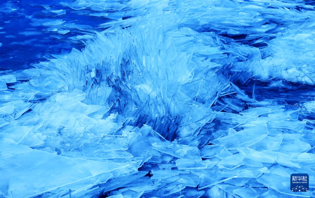 瑪旁雍錯湖面上的冰堆積在一起,呈現(xiàn)出各式各樣的造型(1月29日攝)。新華社記者 關(guān)明輝 攝
