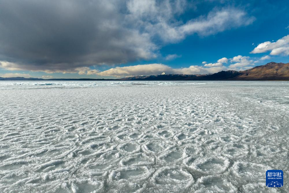 瑪旁雍錯湖面上的冰堆積在一起,形似波浪(1月29日攝)。新華社記者 關(guān)明輝 攝