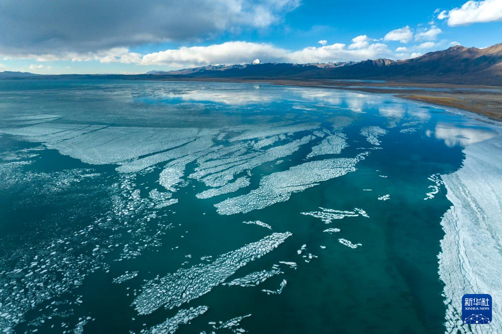 瑪旁雍錯與遠(yuǎn)處的岡仁波齊峰(1月29日攝,無人機(jī)照片)。新華社發(fā)(旦增努布攝)