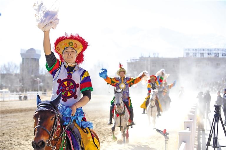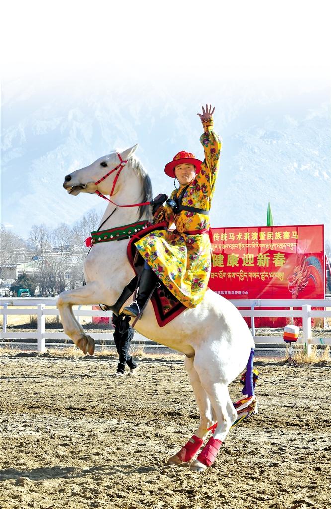 2月12日藏歷新年初三,主題為“體育大拜年,健康迎新春”的民族傳統(tǒng)馬術(shù)表演暨民族賽馬活動(dòng)在拉薩賽馬場(chǎng)舉行。