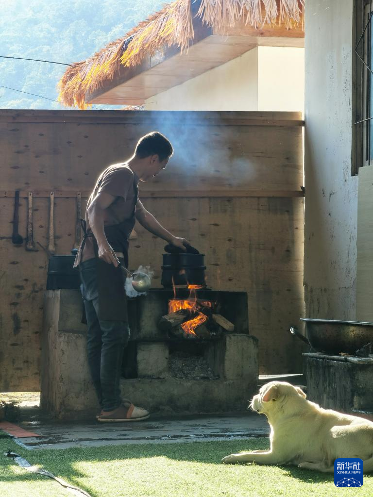次旺江措在烹制石鍋雞(2023年6月10日攝)。新華社發(fā)