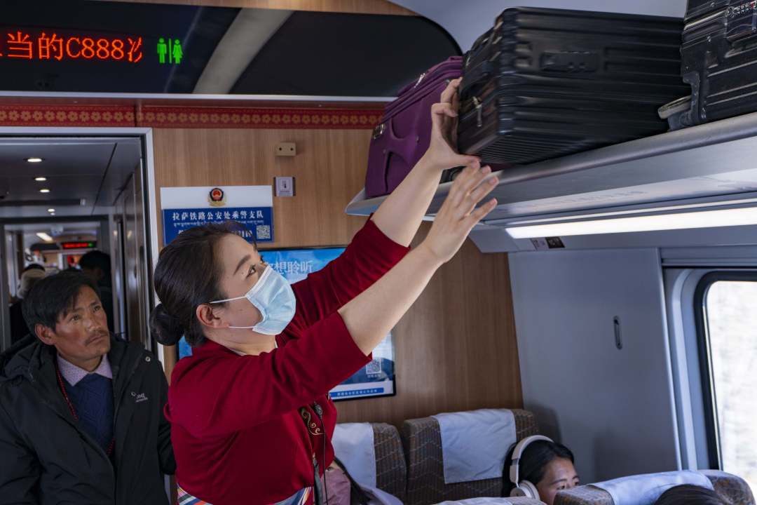 隨著春節(jié)及藏歷新年假期進(jìn)入尾聲,西藏春運(yùn)迎來(lái)返程高峰。2月17日,記者跟隨來(lái)到了青藏鐵路拉薩至日喀則的列車(chē)上,同列車(chē)員一道感受春運(yùn)高峰的忙碌。