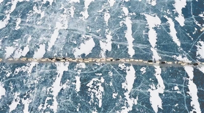 湛藍(lán)色的冰面上,牧羊人吹著口哨,驅(qū)趕著羊群,朝著遠(yuǎn)方前進,留下一串串蹄聲和羊鞭揮舞聲。