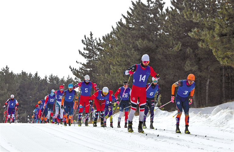 2月1日,第十四屆全國(guó)冬季運(yùn)動(dòng)會(huì)滑雪登山項(xiàng)目公開組混合接力比賽在內(nèi)蒙古扎蘭屯市金龍山滑雪場(chǎng)舉行。