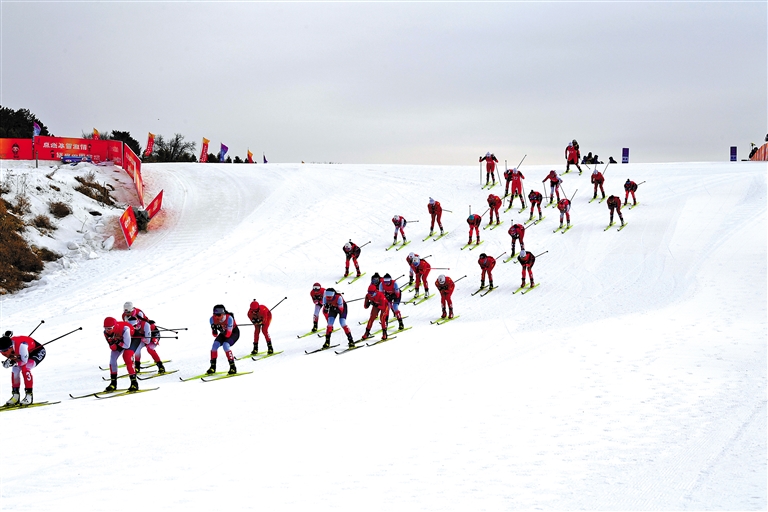 圖為公開組女子雙追逐(7.5公里傳統(tǒng)技術(shù)+7.5公里自由技術(shù))比賽現(xiàn)場(chǎng)。洛桑 索朗群培 攝