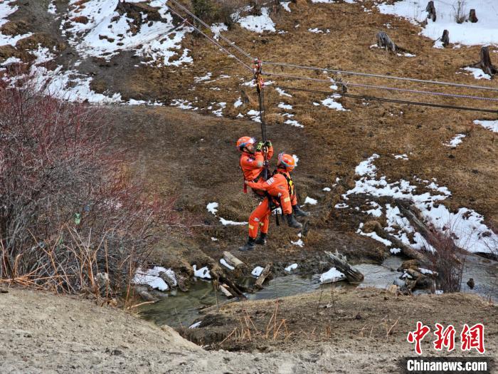圖為拉練中開展繩索救助應用實戰(zhàn)化訓練。西藏林芝市森林消防支隊供圖
