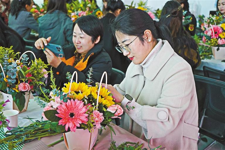 “三八”國際勞動婦女節(jié)來臨之際,拉薩市堆龍德慶區(qū)婦聯(lián)在龍創(chuàng)空間舉辦花藝培訓(xùn)和藏式香薰手工制作等特色活動。活動現(xiàn)場,大家邊學(xué)習(xí)邊交流心得,在歡聲笑語中,一件件獨一無二的花藝作品和藏香手工藝作品呈現(xiàn)在大家面前,每一件作品都飽含了廣大婦女對幸福生活的美好祝愿,大家臉上洋溢著燦爛的笑容。