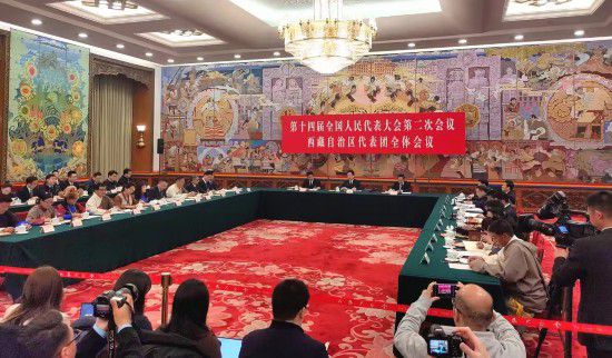“西藏有大大小小1500多個湖泊,‘措’在藏語中就是湖泊的意思,游客常開玩笑說,這一路上,總是一‘措’再‘措’?!?月6日下午,出席十四屆全國人大二次會議的西藏代表團(tuán)舉行開放團(tuán)組會議,全國人大代表、西藏自治區(qū)主席嚴(yán)金海打趣地說。