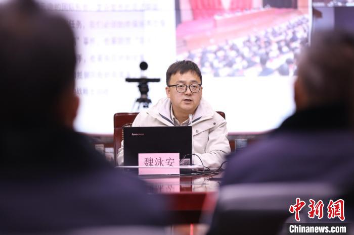 圖為四川大學(xué)馬克思主義學(xué)院魏泳安副教授通過視頻會議系統(tǒng)向阿里邊境管理支隊(duì)全體民警講授理論知識?!『『?攝