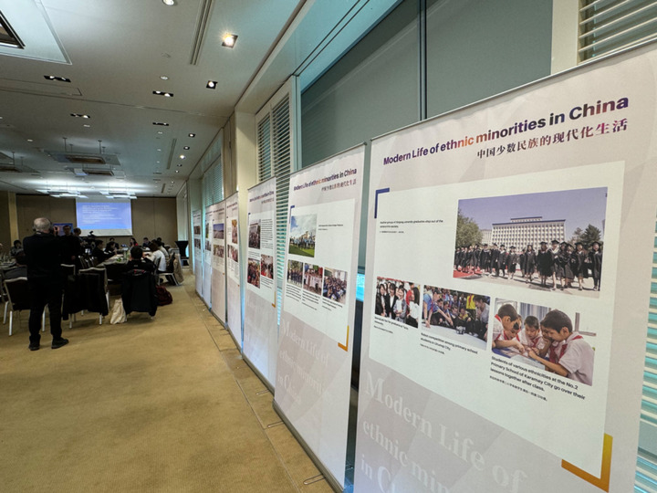 3月14日,由中國人權(quán)研究會主辦的“現(xiàn)代化發(fā)展中的少數(shù)民族受教育權(quán)——以中國西藏和新疆為例”主題邊會在瑞士日內(nèi)瓦舉行。圖為會議現(xiàn)場舉辦的“中國少數(shù)民族的現(xiàn)代化生活”圖片展。新華社記者石松攝