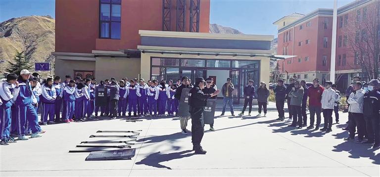 民警開展安全演練進(jìn)校園活動(dòng)。 圖由拉薩市公安局治安管理支隊(duì)提供
