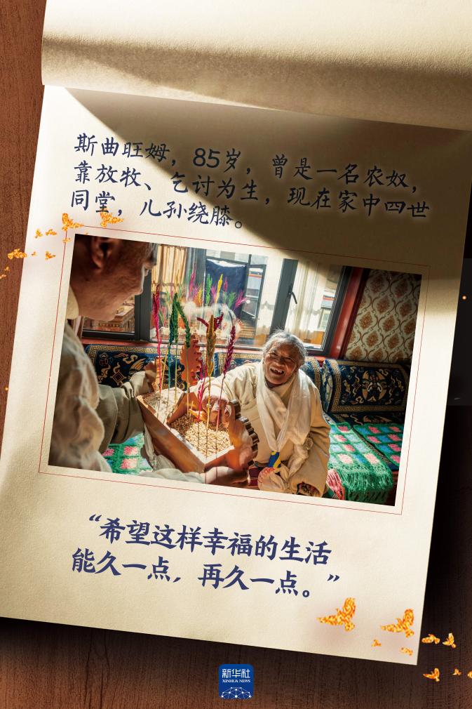 斯曲旺姆和外婆相依為命。她回憶說:“那時我們沒有自己的牛羊,替農(nóng)奴主放牧一整年,換來的糌粑也不夠吃,僅有的收入還要交種類繁多、難以負擔的稅,許多時候只能靠乞討過活?!?/p>