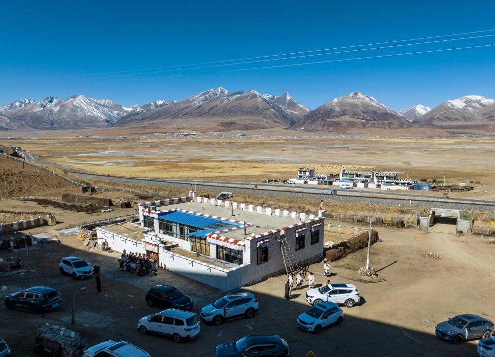 這是斯曲旺姆在西藏拉薩市當雄縣公塘鄉(xiāng)甲根村的家(2月10日攝,無人機照片)。新華社記者 孫非 攝
