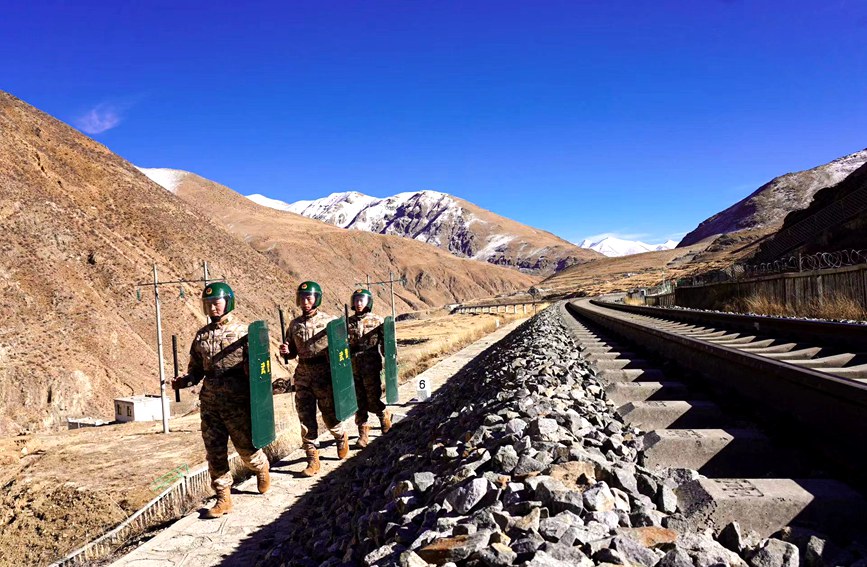 武警戰(zhàn)士在鐵路沿線巡邏。采訪對象提供