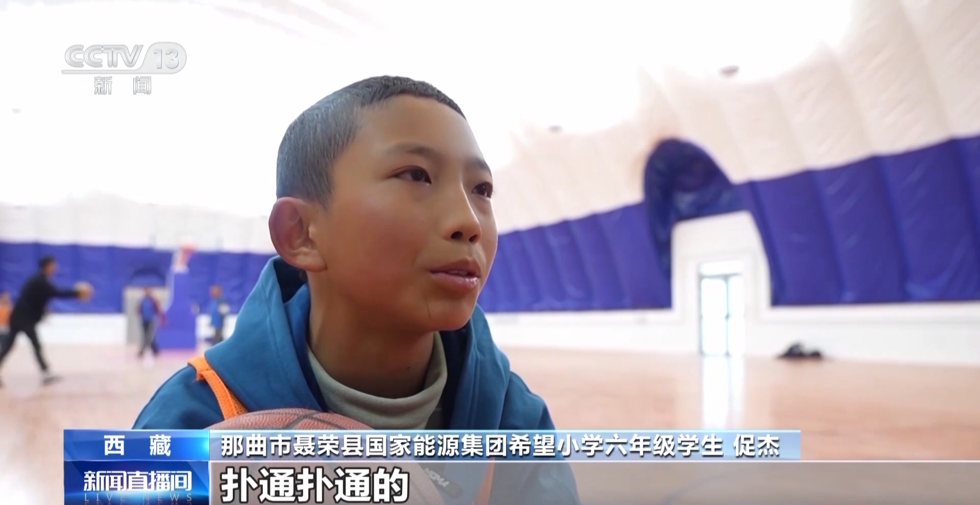 那曲市聶榮縣國家能源集團希望小學(xué)六年級學(xué)生 促杰:高海拔打球特別困難,每次心跳得特別快,撲通撲通的。