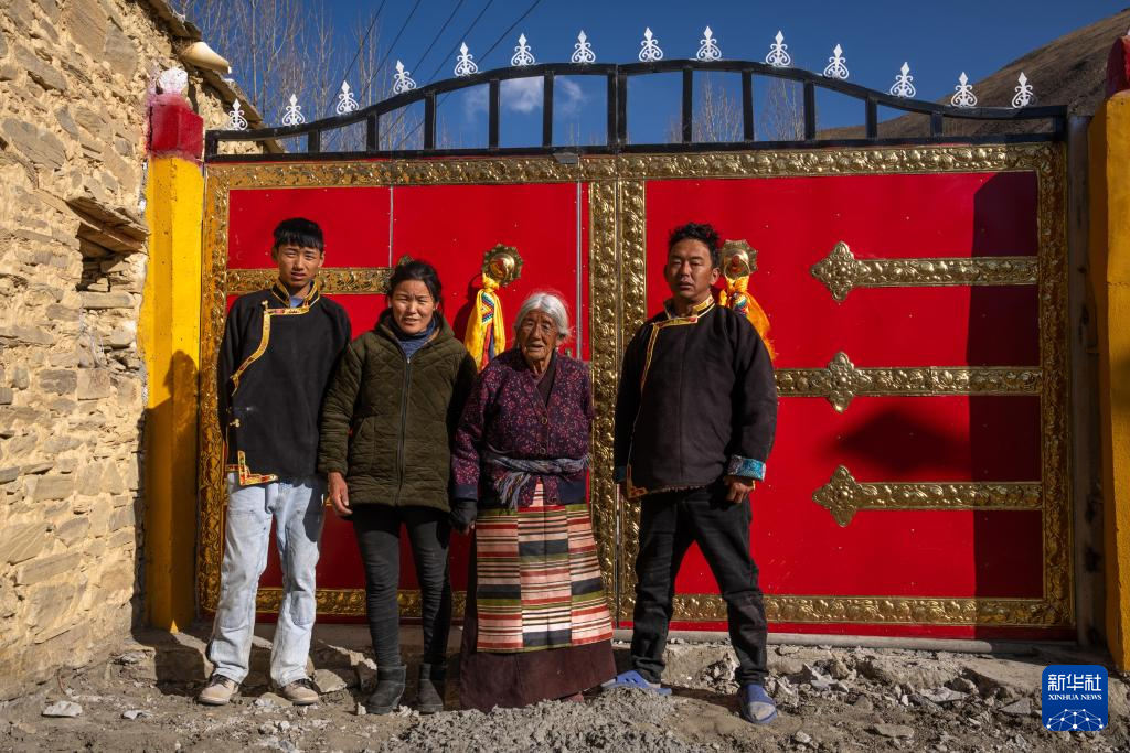 格桑曲珍(左三)與家人合影(3月16日攝)。新華社記者 旦增尼瑪曲珠 攝