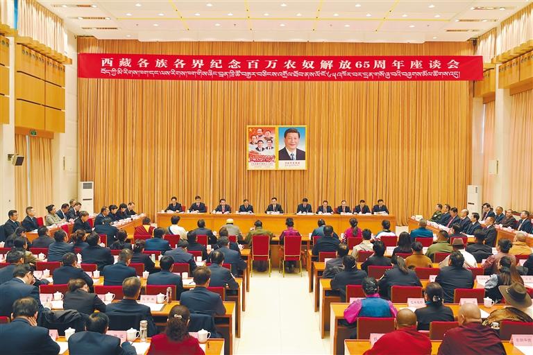 3月28日,西藏各族各界紀(jì)念百萬(wàn)農(nóng)奴解放65周年座談會(huì)在拉薩召開。