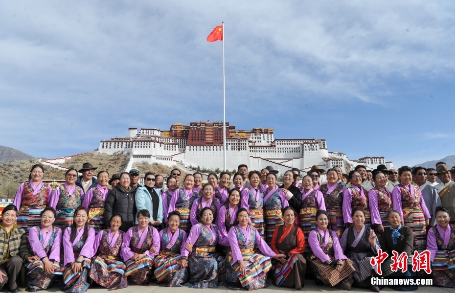 3月28日,西藏各族各界人士聚集在拉薩布達(dá)拉宮廣場(chǎng),升國(guó)旗、唱國(guó)歌,參加西藏百萬(wàn)農(nóng)奴解放65周年紀(jì)念活動(dòng)。圖為民眾身著盛裝在布達(dá)拉宮廣場(chǎng)留影。中新社記者 貢嘎來(lái)松 攝