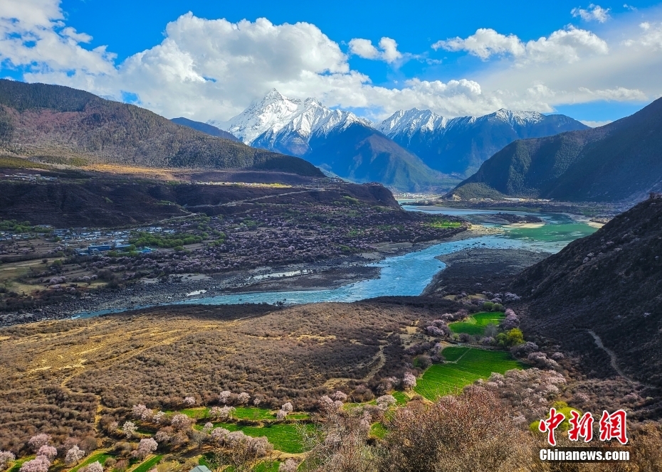 4月1日,西藏林芝市米林市境內(nèi)的南迦巴瓦峰下,桃花盛開,吸引了眾多游客前來游玩。南迦巴瓦峰被譽(yù)為“眾山之父”,海拔7782米,其山頂終年積雪,而山腳下則是郁郁蔥蔥的樹木和盛開的桃花,形成了一幅獨(dú)特的垂直自然景觀。
