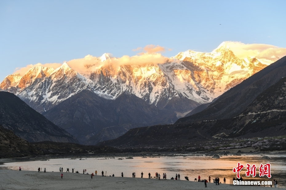 圖為游客在南迦巴瓦峰腳下觀賞“日照金山”。中新社記者 貢嘎來松 攝