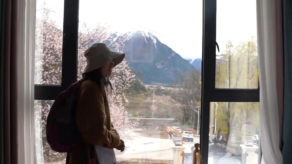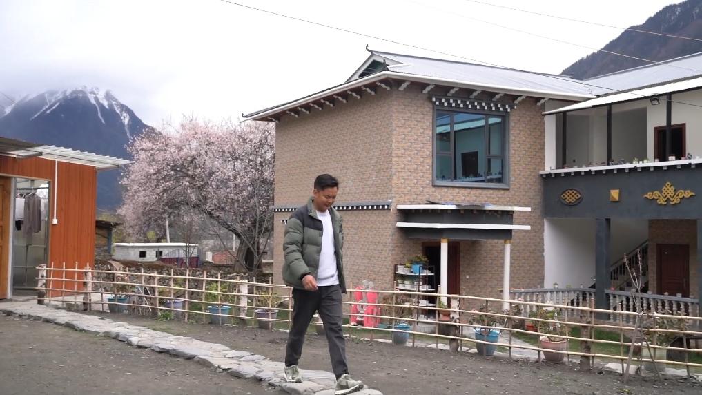 下午4點(diǎn),林芝市波密縣傾多鎮(zhèn)古通村,遠(yuǎn)來(lái)的游客入住到村民洛松頓珠開辦的民宿。寬敞的客廳里,藏式家具整齊大氣,窗外古老的桃花樹隨風(fēng)散落著陣陣花雨。