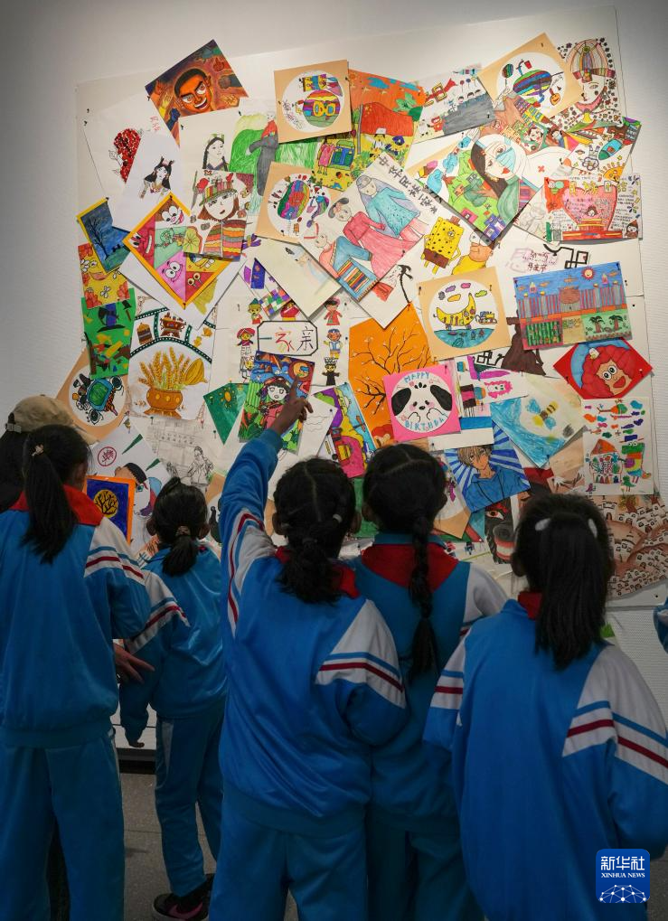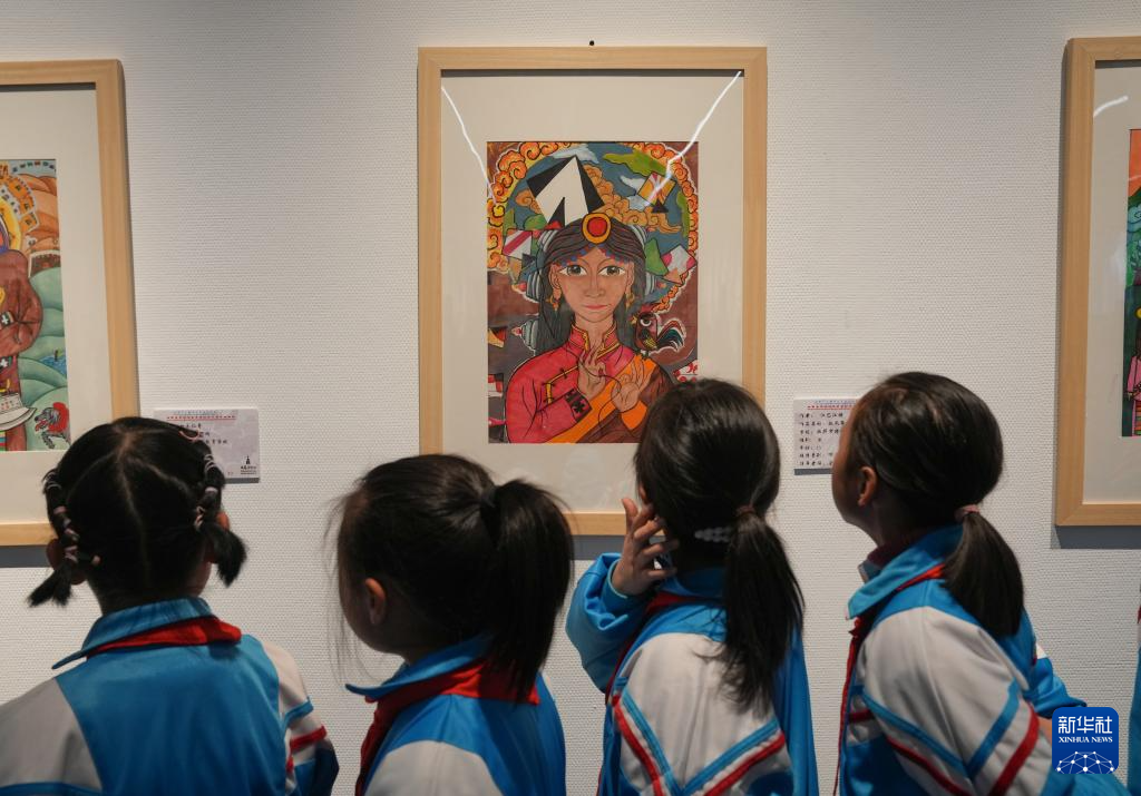 4月19日,拉薩市的小學生在參觀畫展。新華社記者 晉美多吉 攝