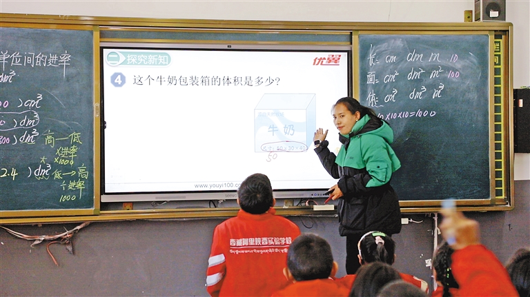 圖為阿里地區(qū)陜西實驗學(xué)校教師利用多媒體平臺為學(xué)生授課。記者 洛桑旦增 達珍 永青 攝