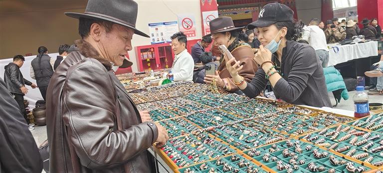 記者在展廳看到,參展商家攤位分布有序,前來購買各種珠寶、藝術(shù)品的顧客絡(luò)繹不絕。活動(dòng)現(xiàn)場(chǎng),匯聚了來自全國各地的珠寶商、藝術(shù)家、收藏家及投資者。博覽會(huì)期間,主辦方舉辦了珠寶、藝術(shù)品鑒定評(píng)估等商貿(mào)活動(dòng),以及珠寶藝術(shù)品講座、研討會(huì)等文化交流活動(dòng),為與會(huì)者提供了一個(gè)全面了解西藏珠寶及藝術(shù)品的機(jī)會(huì),同時(shí)也為珠寶商、藝術(shù)家和投資者搭建了一個(gè)交流與合作的平臺(tái)。文/圖 記者 張雪芳