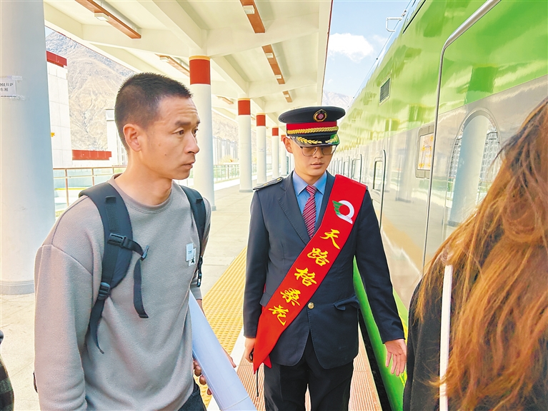 圖為山南火車站工作人員引導(dǎo)旅客有序進入復(fù)興號動車。記者 武沛濤 攝
