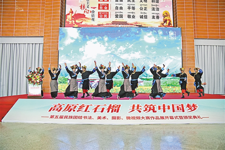 28日,“高原紅石榴 共筑中國夢”第五屆民族團(tuán)結(jié)書法、美術(shù)、攝影、微視頻大賽作品展開幕式暨頒獎典禮在西藏自然科學(xué)博物館舉行。此次展覽將持續(xù)至5月8日。