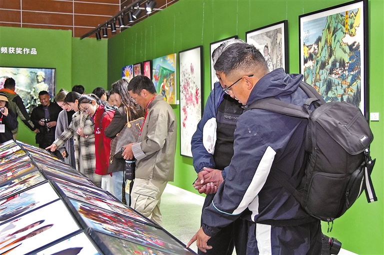 圖為觀眾在觀看攝影獲獎作品。