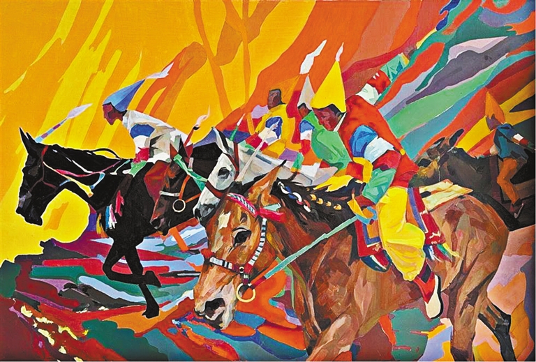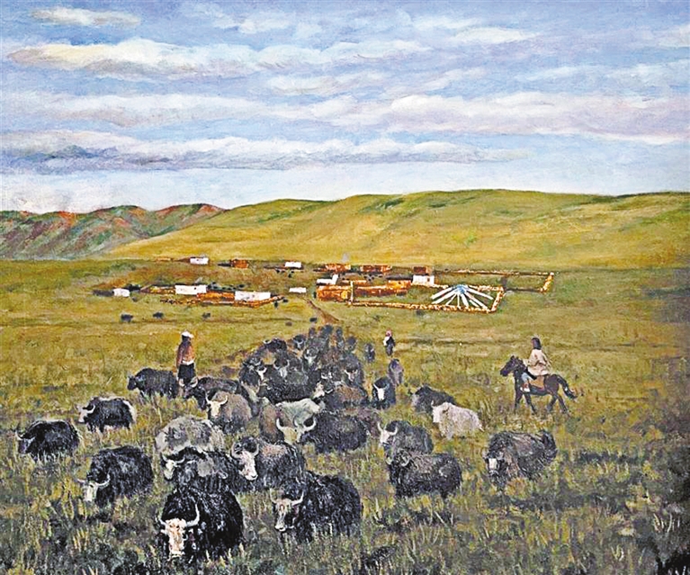 美術(shù)二等獎作品《幸福西藏·牧區(qū)印象》?!∽髡摺」?/p>