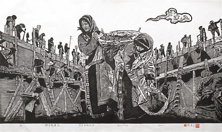 美術(shù)二等獎作品《鑄牢新家園》?!∽髡摺∷箚伟?/p>