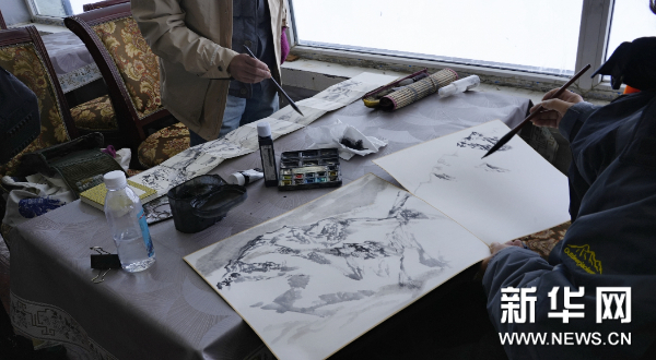 藝術(shù)家在達(dá)古冰川景區(qū)采風(fēng)創(chuàng)作